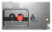 the binding posts (photo at right), and it has two keyhole shaped mounting