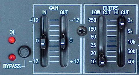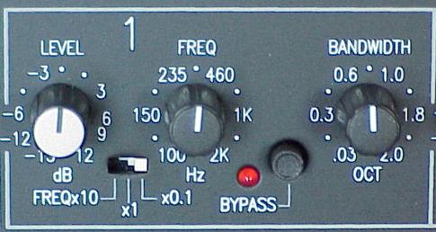The Rane PE-17 is a five-band EQ with adjustable Q, meaning that you can choose how much bandwidth is to be included in each band of boost or reduction at a particular frequency. It is powered by a wall-wart, and will give you 12 dB of boost or 15 dB of reduction at any of the five frequency bands. Each band unit is identical to the other four, so starting on the left, you could set the first band unit to boost, say 25 Hz, by 3 dB, then, on the next band unit to the right, reduce 40 Hz by 5 dB, and so on, until you have used all five band units. Each band unit can be inserted or eliminated from the circuit by use of a bypass push-button. Adjusting the Q from 0.03 to 2 (the number represents octaves) will widen the amount of frequencies on either side of the chosen frequency, so that it could be a notch filter (reduction at 40 Hz with no reduction at 35 Hz or 45 Hz) by setting the Q to 0.03, or some significant reduction at 35 Hz and 45 Hz by setting the Q to a higher number, such as 0.5. There is a slider switch on each band unit allowing you to multiply the frequency setting on the dial by a factor of 10, 1, or 0.1. So, this gives you a lot of flexibility in a frequency range of 10 Hz to 20 kHz. On the far left side of the panel are sliders to let you select a low-cut of 10 Hz to 250 Hz (so, if 250 Hz were selected, nothing below 250 Hz would pass through), and high-cut of 3 kHz to 40 kHz (so, if 20 kHz were selected, nothing above 20 kHz would pass through). There are also sliders to raise or lower the overall input and output by 12 dB. XLR and 1/4" Phone Plug inputs and outputs are supplied. I used the XLR balanced, as this makes a big difference in keeping hum out of the subwoofer circuit.