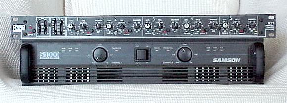 A Samson S1000 power amplifier (545 watts x 2 into 4 Ohms) came with the SVS (included as part of the purchase price), along with a Rane PE-17 Parametric Equalizer ($399 option). The Samson is a touring amplifier, which is designed to drive 4 Ohm loads without difficulty. You can connect a single input signal, switch the amp to parallel operation (the input goes to both channels), and you connect one channel output to one sub and the other channel output to the second sub. In my tests, I found a single subwoofer to put out tremendous SPL at low frequencies, so if you don't plan to run stereo subs, a single SVS is fine. However, do not bridge the amplifier to drive the single sub in this case. Bridging reduces the ability of an amplifier to drive low impedances, and when I ran my Carvin power amplifier (also a touring amp) in bridged mode with the SVS at high volume, I burned it up. So, if you have the stereo amp and one sub, just drive it with one of the amplifier channels. Later on, if and when you decide to have stereo subs, connect one sub to each of the channel outputs, and run it in stereo mode rather than parallel. The inputs could come from either right and left sub-out on some receivers, or right and left rec-out, or right and left pre-out (Y connected to the right and left power amplifiers that drive the front right and left main speakers).
