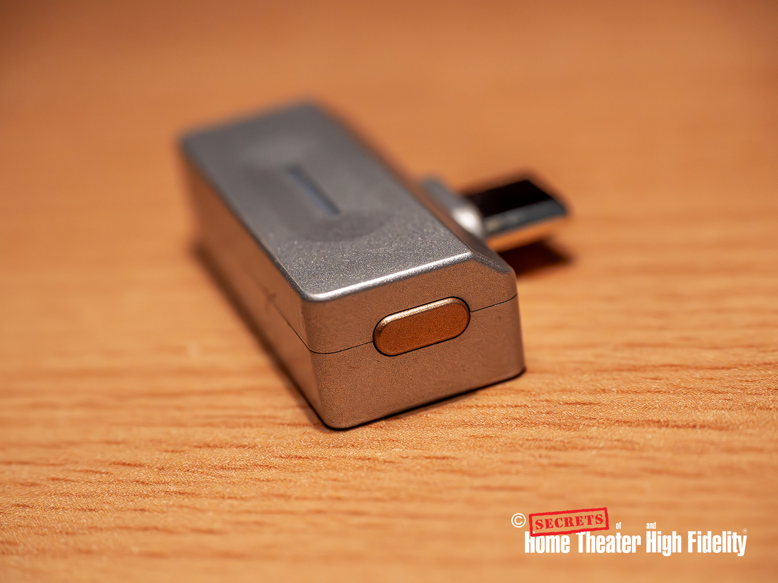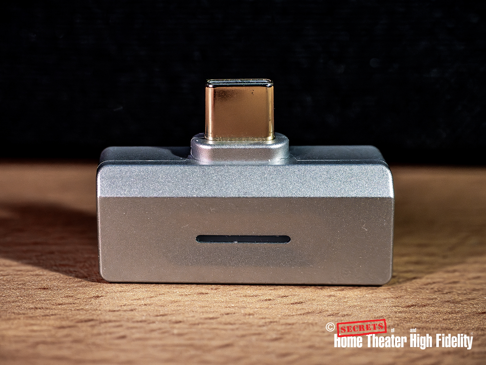 The Air Link has a metal body and a gold-plated USB-C connector, which is a quality touch that will help it to avoid oxidation and resist wear. The front has an RGB light that changes colors to signal what codec it is using. The Air Link automatically connects using the highest codec the headphones can use. If using an Apple product, the connection will be SBC, since FiiO hasn’t added the AAC codec yet. On the right side is a small multi-function button which is used for pairing and codec switching (like aptX Adaptive & LDAC). On the left side is a USB-C port for charging a mobile device while using it. The T-shape fits snug against the bottom of my iPhone. There is a small metal collar between the base of the connector and the Air Link body, which allows for the extra thickness of a case. It almost locks into the iPhone; there is no risk of it falling out.