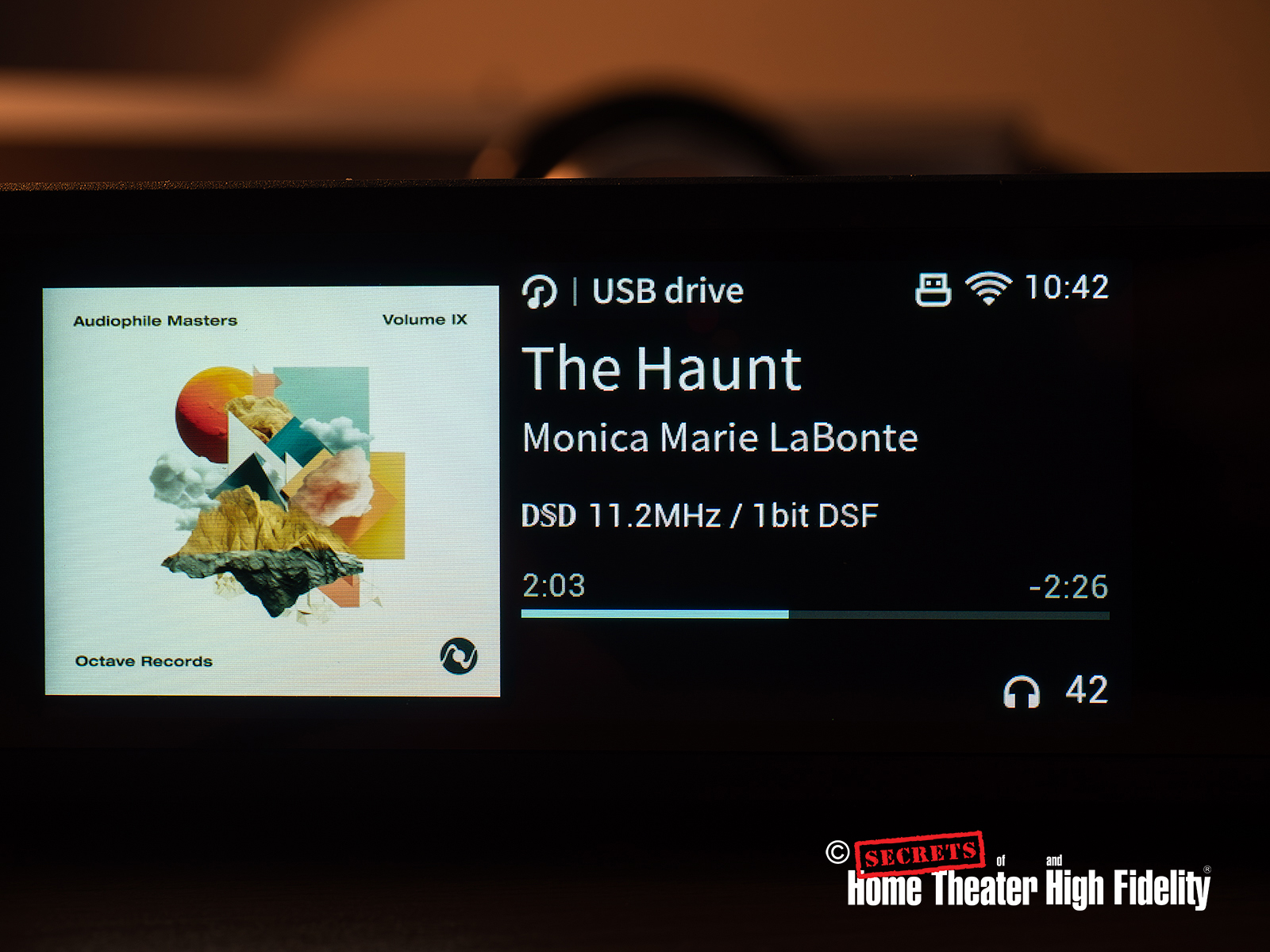 I wanted to test the music library feature by plugging in an external hard drive. I changed the setting from Streaming to USB-C. At first, nothing appeared on the display. Checking the manual, the USB-C input reads FAT, FAT32, exFAT, and NTFS file formats. I reformatted my jump drive from the standard Mac format to FAT and reloaded the DSD music files. The display instantly showed a full color image of the album the music was from, as well as all the file information. It played the DSD file without issue and sounded wonderful.