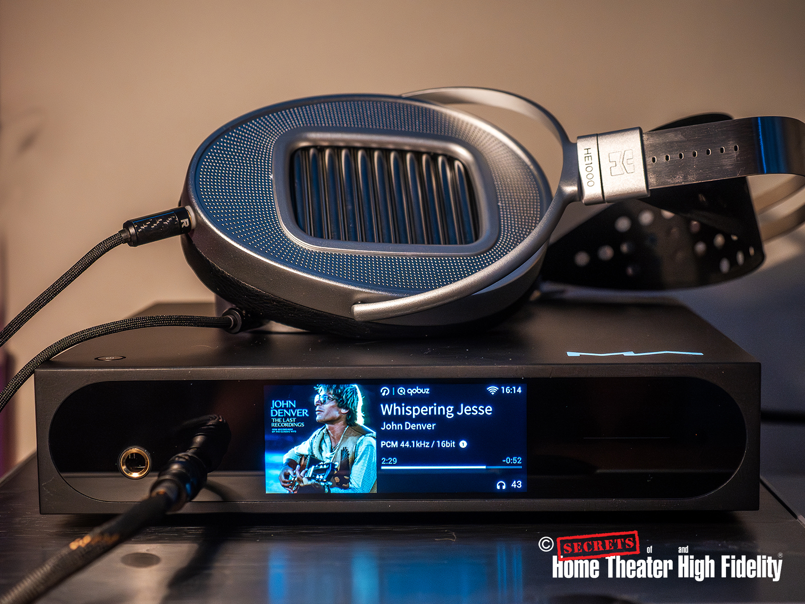 The mini-i Pro 4 had no trouble powering the HE1000 Unveiled, which at 28Ω and 95dB isn’t hard to drive, but is picky about how it’s driven. The mini-i Pro 4 provided all the dynamics and detail that make the HE1000 Unveiled such a soulful and beautiful listening experience. I found the sound signature to be neutral/warm with precise detail. The bass notes had punch and fullness, and the mids and highs, though still retaining the warmth of the low end, had a crystalline clarity that complemented the strengths of the planar headphones while smoothing out the sometimes-edgy brightness the HE1000 can have on some pieces of music. I think this would be a good choice for someone who is treble-sensitive. The soundstage was interesting; it had great depth, but a rather closed-in width. Both the Arya Unveiled and the HE1000 Unveiled are soundstage stars, in my opinion, and so it was surprising to hear them become more intimate, as if I had stepped closer to the performers. It wasn’t a negative, just a different way to experience the music. Though all three headphones need quality power to show them at their best, the mini-i Pro 4 delivered with room to spare.
