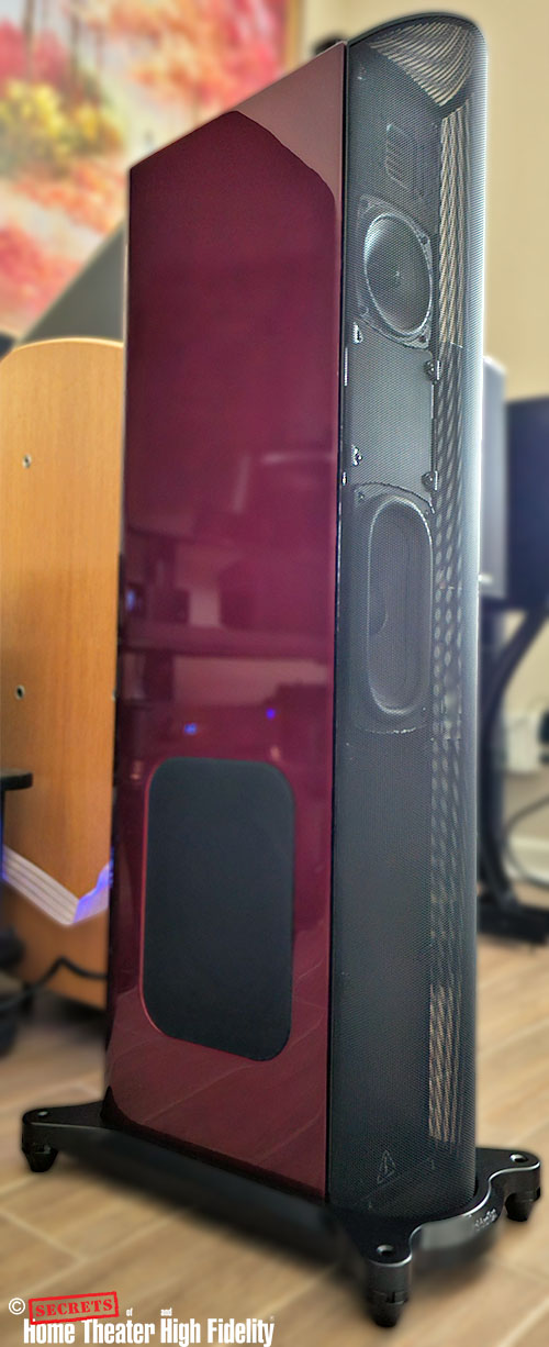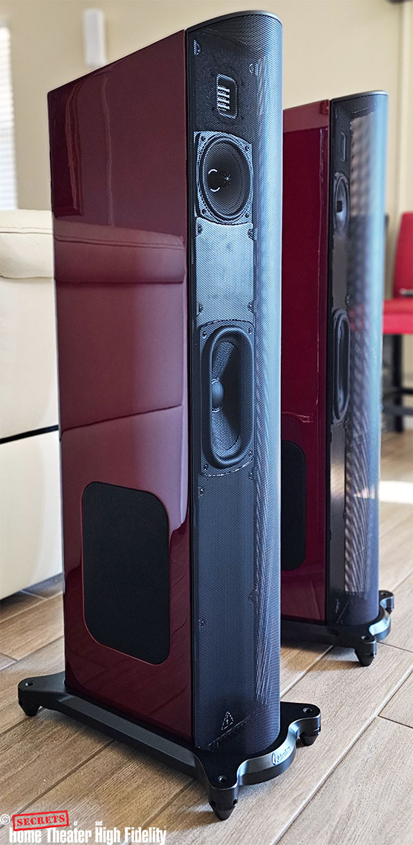 GoldenEar T44 loudspeakers in Santa Barbara red finish