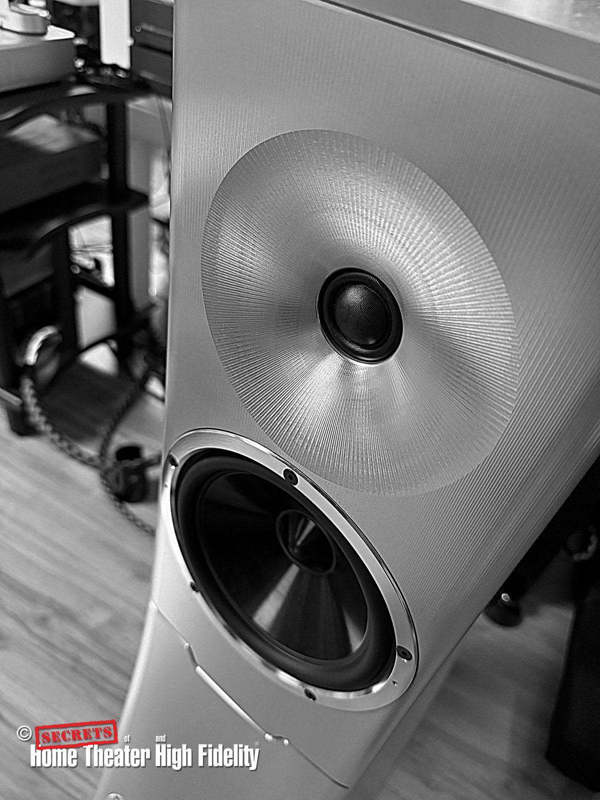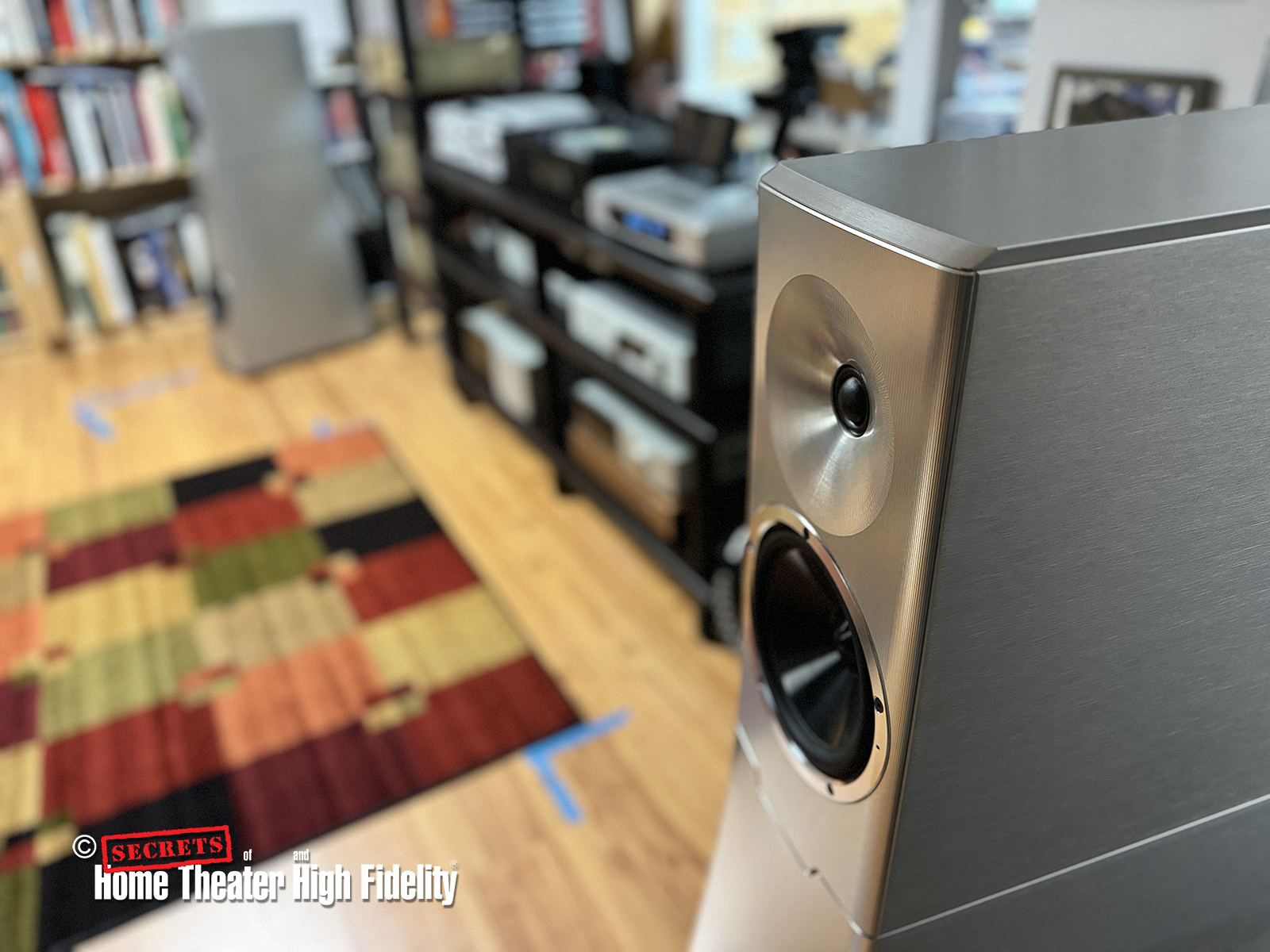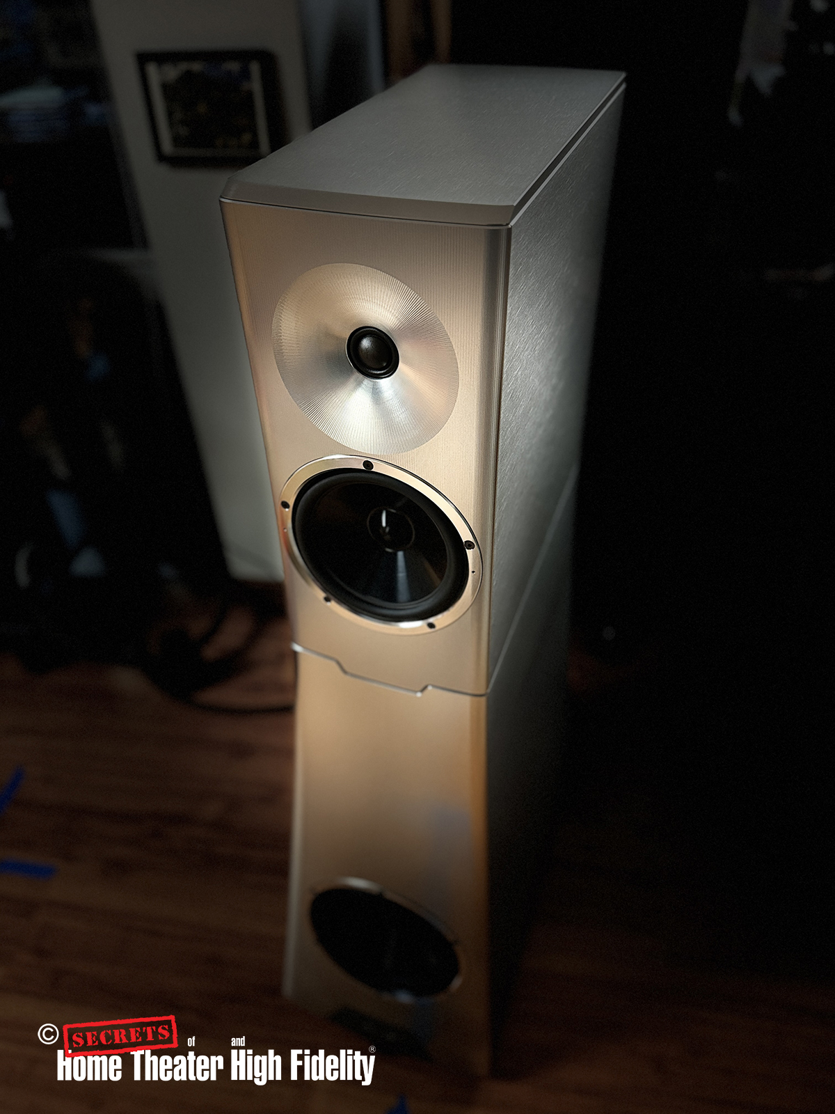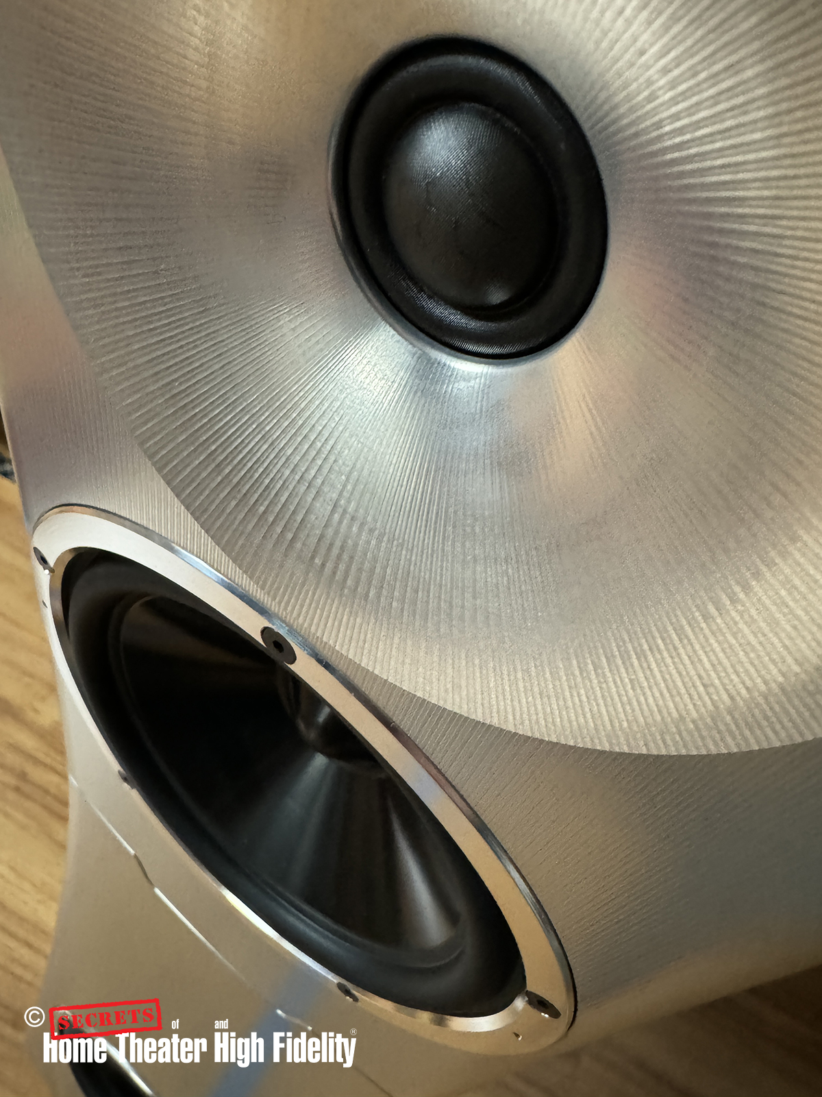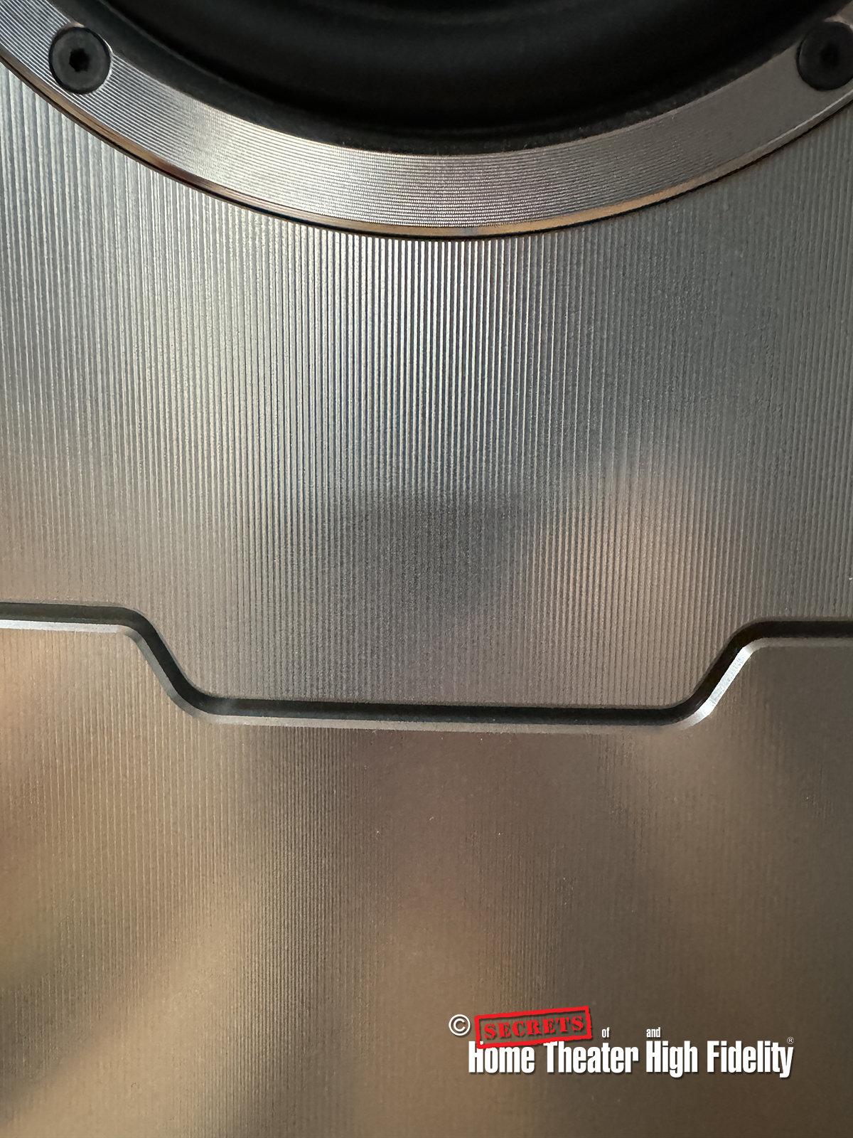 Aesthetically, I like the looks of these speakers. The shape of the cabinets is fundamentally traditional when it comes to speaker design, but there are plenty of subtle curves, bevels, and other detail touches that elevate the overall aesthetic. Note the perfectly aligned milling marks on the front baffle that flow into the waveguide and converge at the tweeter.
