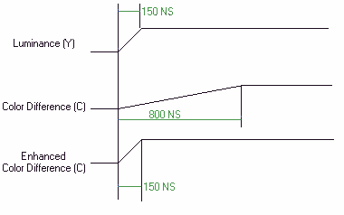 The bandwidth of laserdiscs goes out to about 5.5 MHz and DVD to 6.75 MHz. For each MHz, you get approximately 80 lines of horizontal resolution (meaning vertical lines on the TV screen). Neither source is completely flat out to their limit, but DVD is pretty close compared to LD. The bandwidth expansion technology can actually give the perceived appearance of having much higher resolution (bandwidth) by using a few tricks that Faroudja pioneered and patented. A simple explanation is that they tie the Chrominance (C) signal to the Luminance (Y) signal. This is based on the Y rise time, which is faster than the C rise time. The CBA monitors the Y transitions and then synthesizes a new C transition so that it matches the Y transition.